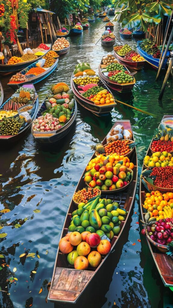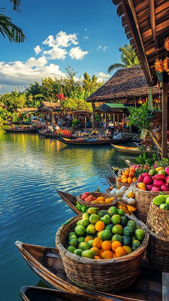 The floating market is a lively place where boats carry fresh fruits, snacks and handmade items along calm canals. Vendors call out with friendly smiles, creating a warm atmosphere. You can taste local food, shop for small treats and enjoy a simple, colourful glimpse into everyday life on the water.